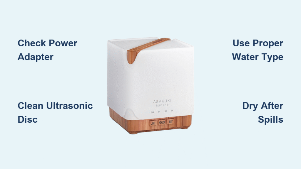 Bottom line: 83% of Asakuki humidifier failures stem from water quality issues and skipped maintenance—not hardware defects. Start with the adapter test and disc cleaning, then implement the weekly maintenance schedule. If your unit remains dead after these steps, that 12-month warranty guarantees replacement—just use our proven email template. Your mist solution is likely sitting in your vinegar cabinet right now.