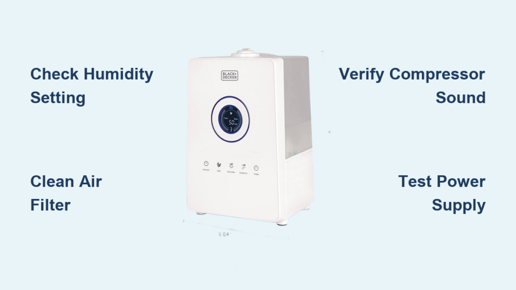 When your Black and Decker unit powers on with the fan spinning but no water collects, you’re likely facing compressor or refrigerant issues. This is one of the most common “black and decker humidifier not working” scenarios homeowners encounter.
