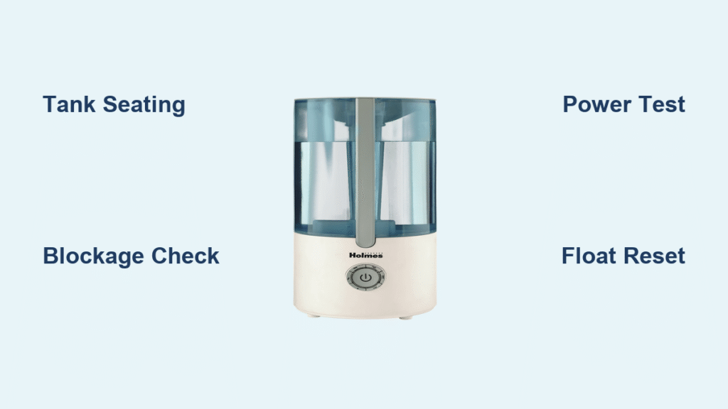 Your Holmes humidifier lights up and hums, but zero mist rises into the dry air. You’ve refilled the tank twice,