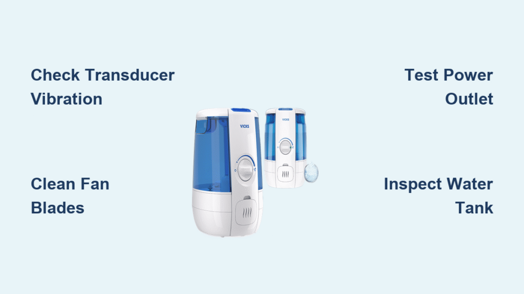 Your Vicks humidifier powers on with blinking lights but stubbornly refuses to produce mist, leaving your room dry while the