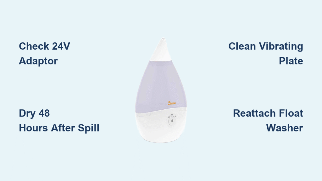 Your throat feels like sandpaper, the air crackles with static, and your trusty Crane humidifier sits silent on the nightstand—no mist, no soothing hum, just an empty promise of relief. If your Crane cool mist humidifier not working crisis has you staring at a dead appliance at 2 AM, take a breath: 90% of these failures stem from preventable issues you can fix tonight with tools already in your kitchen. Whether your unit lights up but stays silent, refuses to power on, or leaks like a sieve, this guide cuts through generic advice to deliver model-specific fixes verified across Crane’s Drop, Droplet, and 4-in-1 series. Stop Googling fragmented solutions—here’s exactly how to revive your humidifier before sunrise.