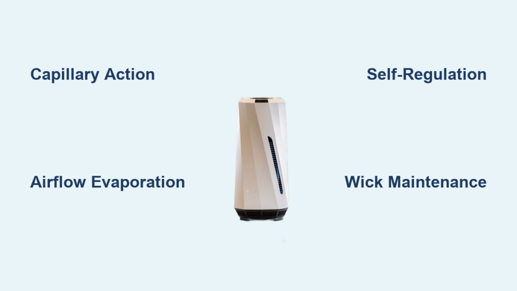 Two simple forces power every evaporative humidifier: capillary action and air movement. No pumps, no heating elements, no complex electronics—just physics doing what it does best.