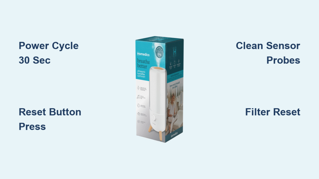 Your Homedics humidifier suddenly stops producing mist while blinking red error lights, leaving your dry winter air feeling like a desert. Before you panic about replacement costs or schedule a technician, know this: 90% of Homedics humidifier errors resolve with simple reset techniques that take under two minutes. Whether you own a warm mist TotalComfort model or an ultrasonic cool mist unit, this guide delivers precise, model-specific reset procedures verified by Homedics’ technical documentation. You’ll learn exactly how to reset your Homedics humidifier for persistent E1/E2 errors, unresponsive controls, and stubborn filter indicators—no guesswork required.