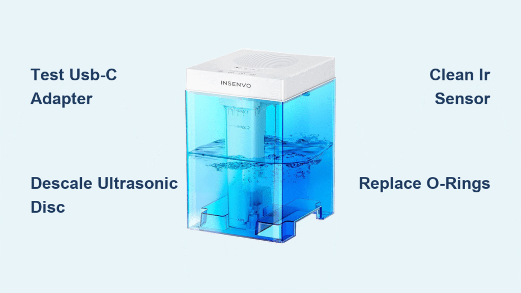 Stop guessing why your Insenvo humidifier died. Run through this symptom-to-fix checklist based on verified user repairs: