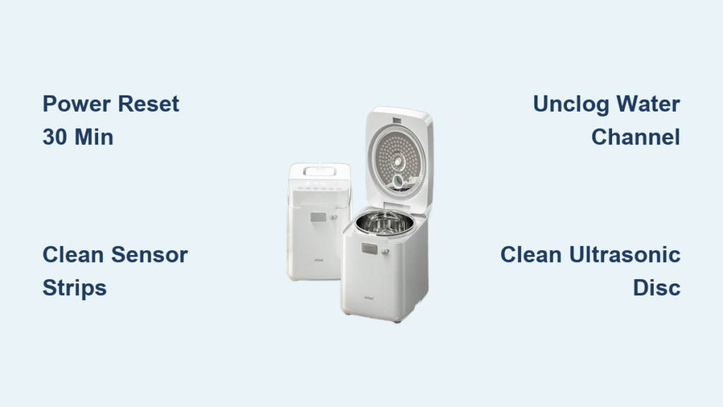 Mineral deposits choke the tiny water channels between tank and base. Fill the tank with a 1:3 white vinegar solution and let soak for 60 minutes. Shake vigorously while upside-down to dislodge deposits. Rinse thoroughly with distilled water until no vinegar odor remains. You’ll hear gurgling as dissolved minerals flush out—this confirms successful unclogging.